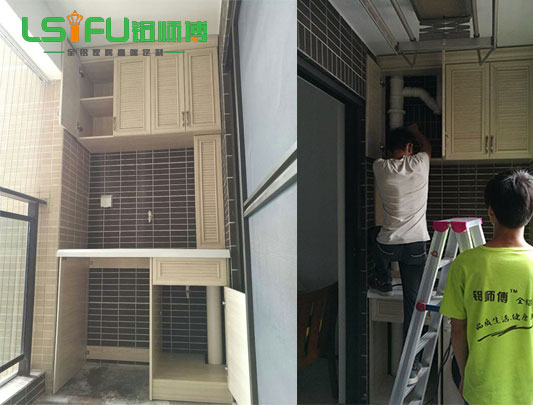 鋁師傅全鋁浴室柜定制正在安裝現(xiàn)場圖
