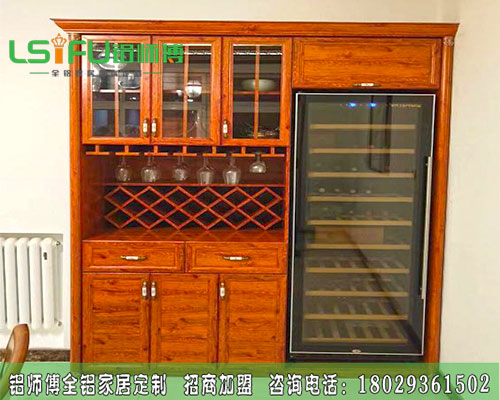 鋁師傅全鋁家具木紋款式整體儲(chǔ)物酒柜裝修效果圖