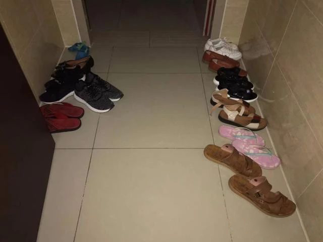把鞋子都塞進(jìn)這個(gè)留空的位置,中間留空擺放鑰匙、包包。