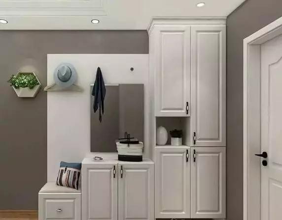 門廳鞋柜恰好能裝下當季鞋履,換鞋凳的抽屜可以放一些零碎物品,而下方懸空部分則可以換平時常穿的鞋子,方便快捷。