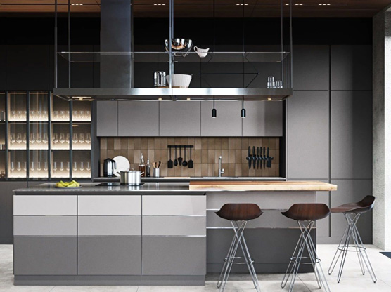 全鋁小吧臺作為隔斷,既能區(qū)分空間,又能承擔更多的功能,可以對飲小酌或是與家人聊天。