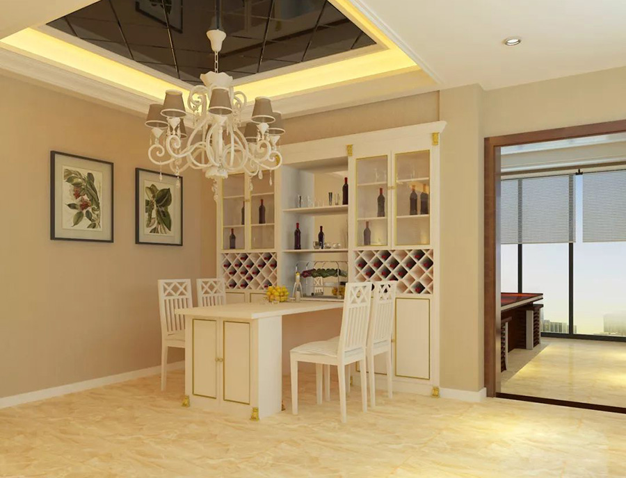 如果家里有人喜歡藏酒喝酒的話,還可以在餐邊柜里裝個(gè)酒格架,這樣酒瓶就不用亂放,親朋好友來了也可以方便地拿出酒來招待。