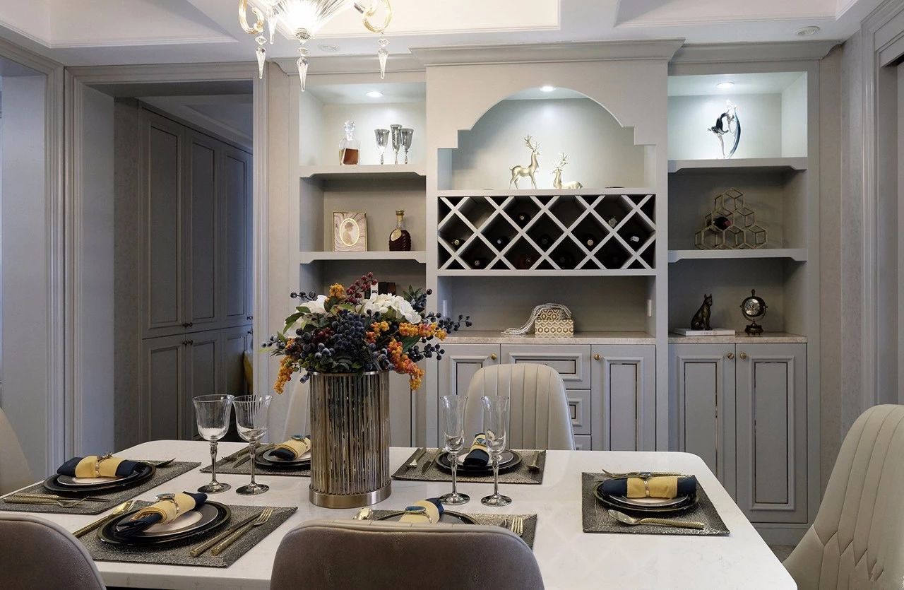 小戶型餐廳布置為了省空間都會簡單粗暴,餐桌椅子一放就搞定用餐事宜。簡單不是簡陋,簡約同樣很美。餐廳旁邊設(shè)計全鋁餐邊柜,儲物空間的增加讓瑣碎雜物都能條理擺放,每頓用餐都能夠舒心暢意地在溫馨餐廳內(nèi)進行。餐廳 · 舒心暢意地用餐