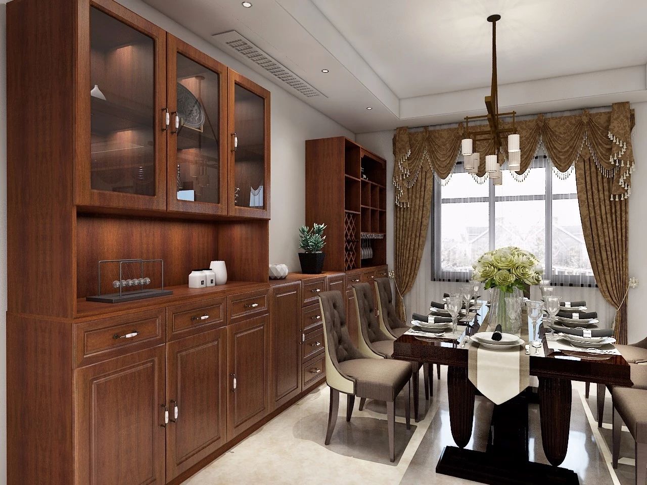像中式、輕奢簡約等比較莊重的風格,則可以選擇較為深色的木質(zhì)感做定制全鋁餐邊柜,這樣搭配出來的空間會顯得更加端莊高檔。