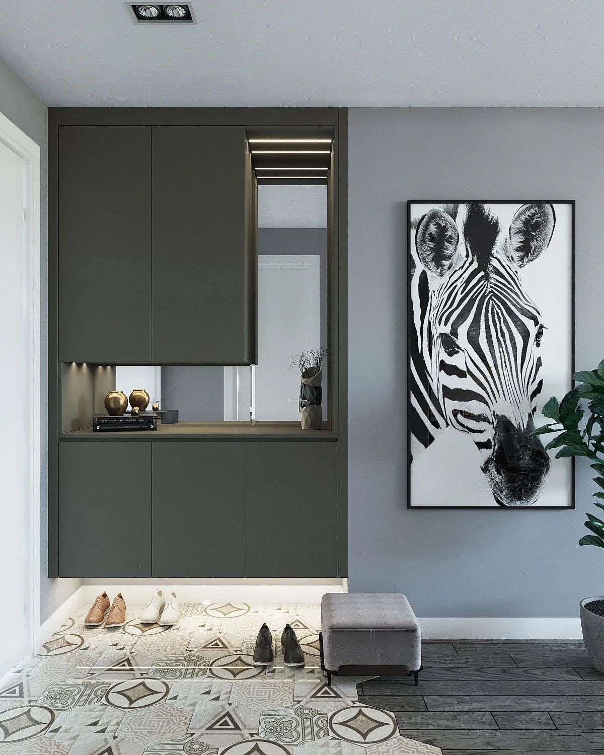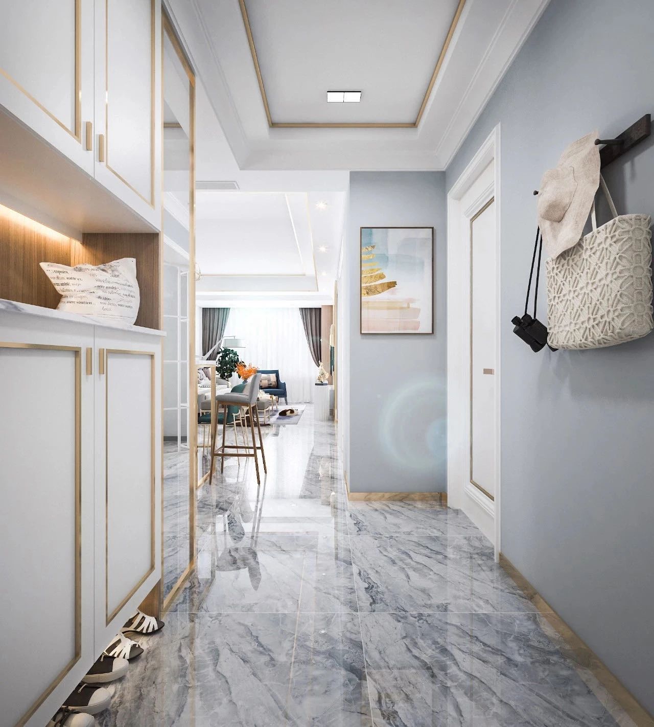 這樣的話換鞋會(huì)非常方便,脫下來的鞋子,不用手拿著放入鞋柜了,也符合大家懶的習(xí)慣。其實(shí)在這一點(diǎn),有很多業(yè)主在設(shè)計(jì)入戶玄關(guān)全鋁鞋柜的時(shí)候,底下都封死了,那么等到你入住之后,真正使用的時(shí)候才感覺麻煩,所以說這點(diǎn)大家都要提前注意一下。