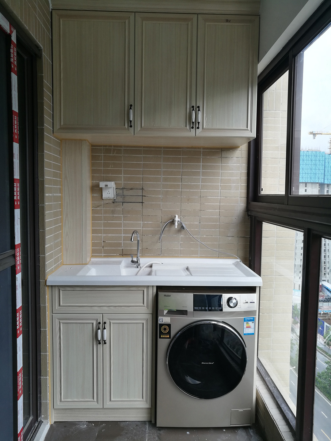 陽臺(tái)設(shè)計(jì)為洗衣房,是最常見的做法,既能方便家居生活,又能滿足晾曬衣物和洗衣機(jī)排水等條件。做了全鋁陽臺(tái)柜,地柜和吊柜設(shè)計(jì),用來收納,而洗衣機(jī)也塞進(jìn)地柜的空間里,整齊美觀又實(shí)用。