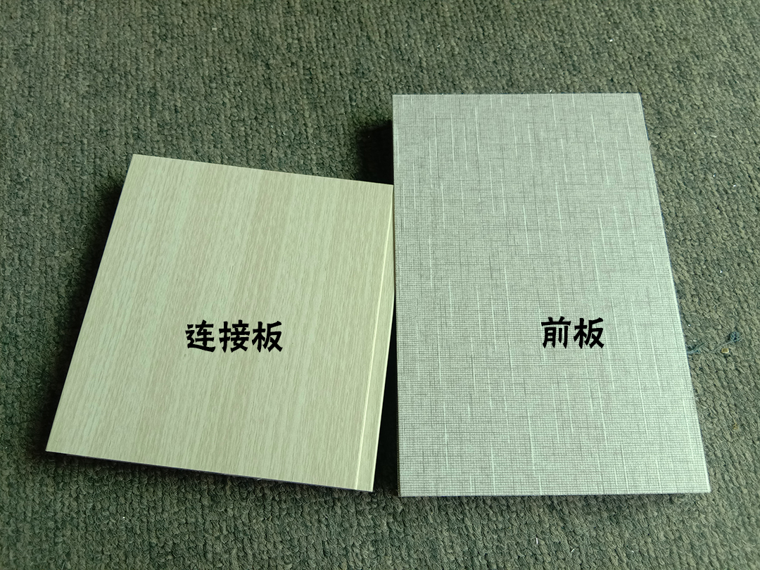 同樣的水倒在木紋鋁板家居和顆粒復(fù)合板家居的背面,木木紋鋁板家居沒有吸水現(xiàn)象,用紙擦拭什么水痕跡都沒有留下,而顆粒復(fù)合板家居則相反,說明木紋鋁板家居防水防潮性能良好