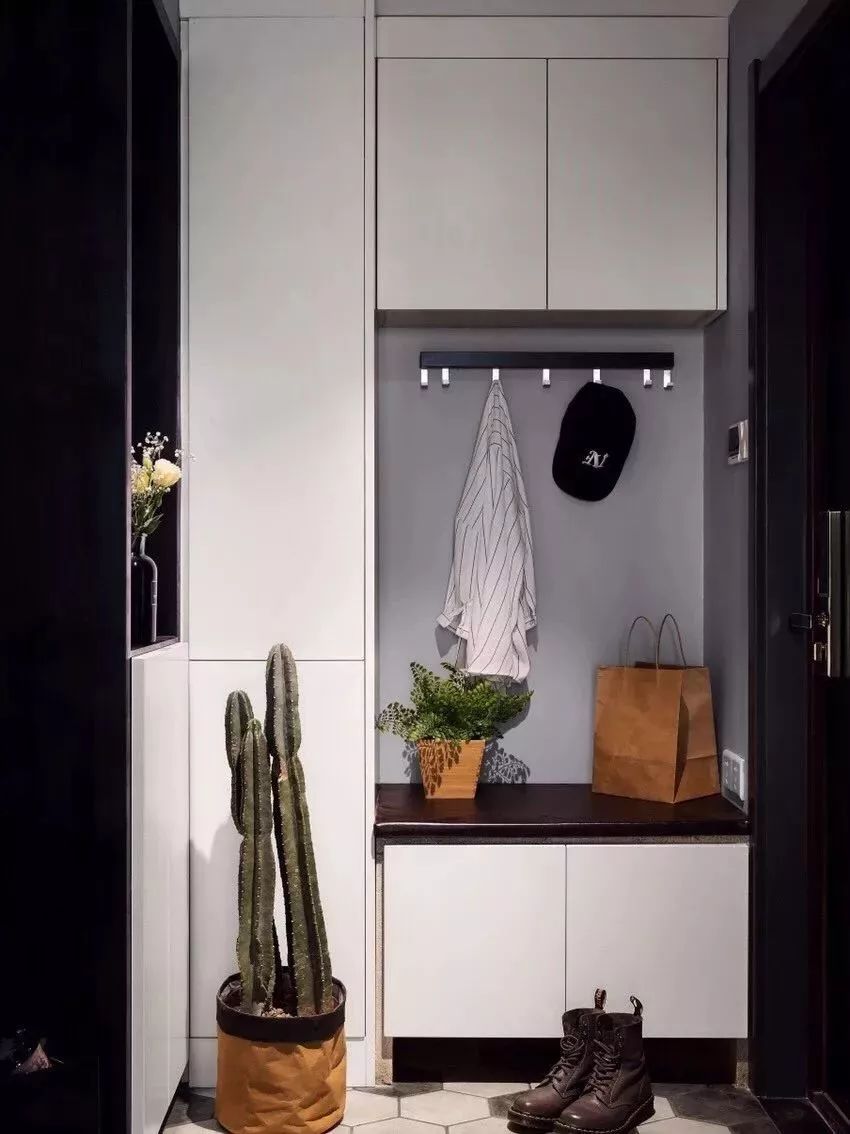 如果家里有老人小孩或者喜歡穿長靴和高跟鞋的女士,設(shè)置一個(gè)換鞋凳是非常有必要的。沒有換鞋凳,你需要保持金雞獨(dú)立的姿勢(shì)脫鞋,或者蹲在地上穿鞋。比較聰明的設(shè)計(jì)是,包含換鞋凳設(shè)計(jì)的鞋柜可以將凳子部分納入柜體,整體看來更規(guī)整,這樣換鞋凳無需額外占用空間,上方空余的空間還可以設(shè)置掛衣鉤,下方可以設(shè)計(jì)成抽屜式儲(chǔ)物或者放置儲(chǔ)物籃,空間利用率更很高。