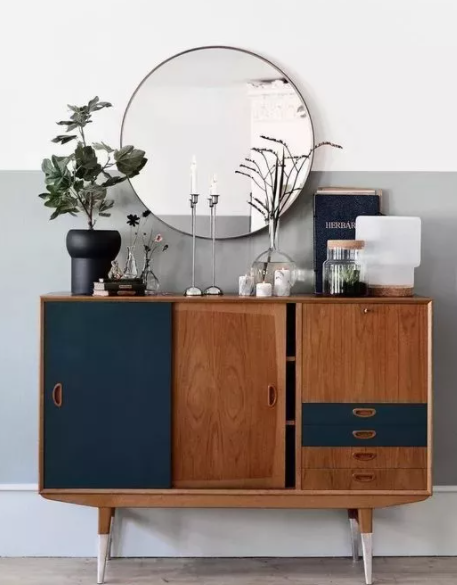 中古風最常見的裝飾就是各種邊柜的搭配,邊柜搭配綠植、裝飾畫、擺件,能創(chuàng)造出文雅的感覺。