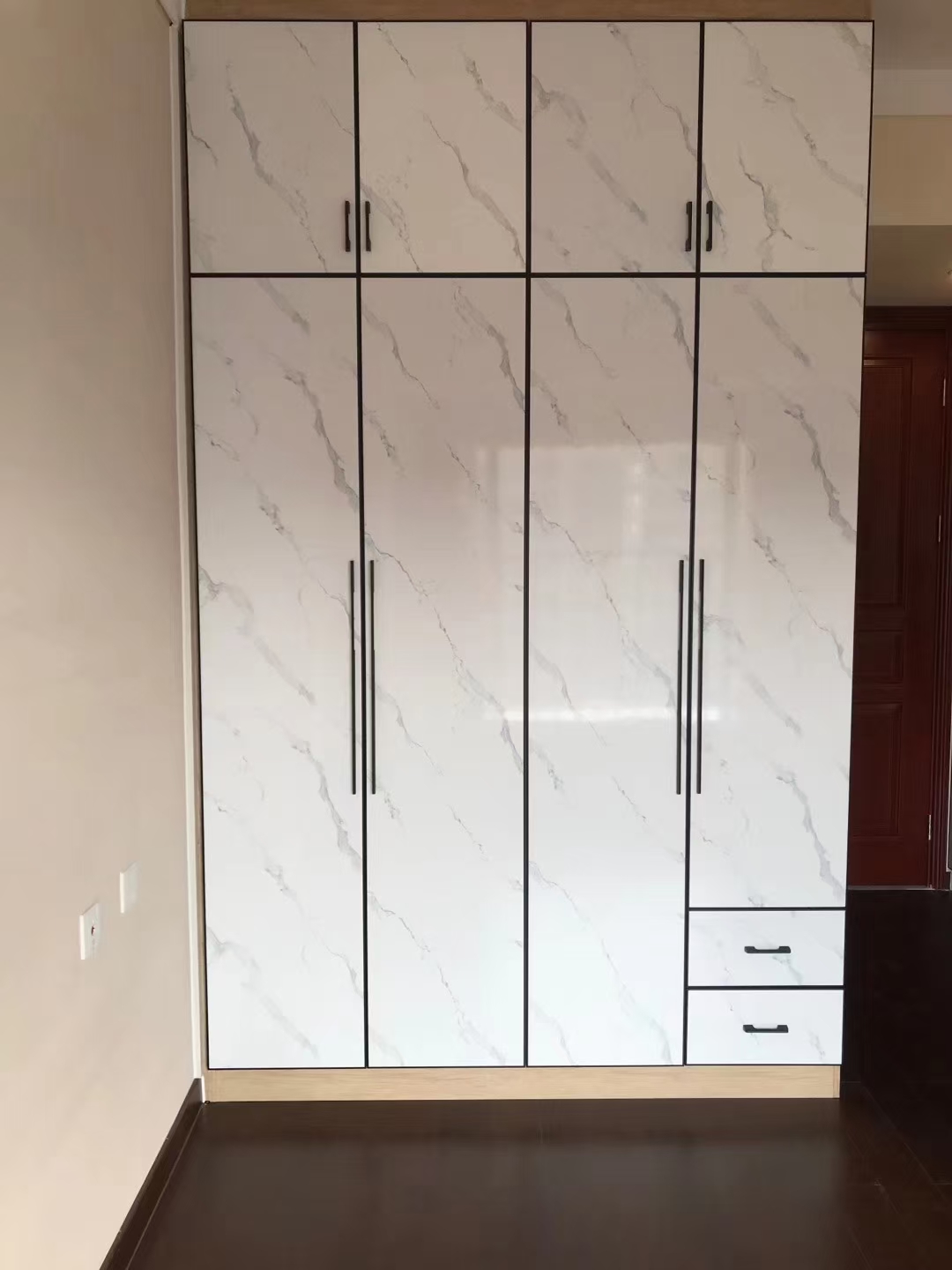 反觀全鋁定制衣柜,不掛是采用鋁型材拼板柜體還是整板柜體,不易損壞變形,且無需特殊保養(yǎng),直接擦拭清潔。