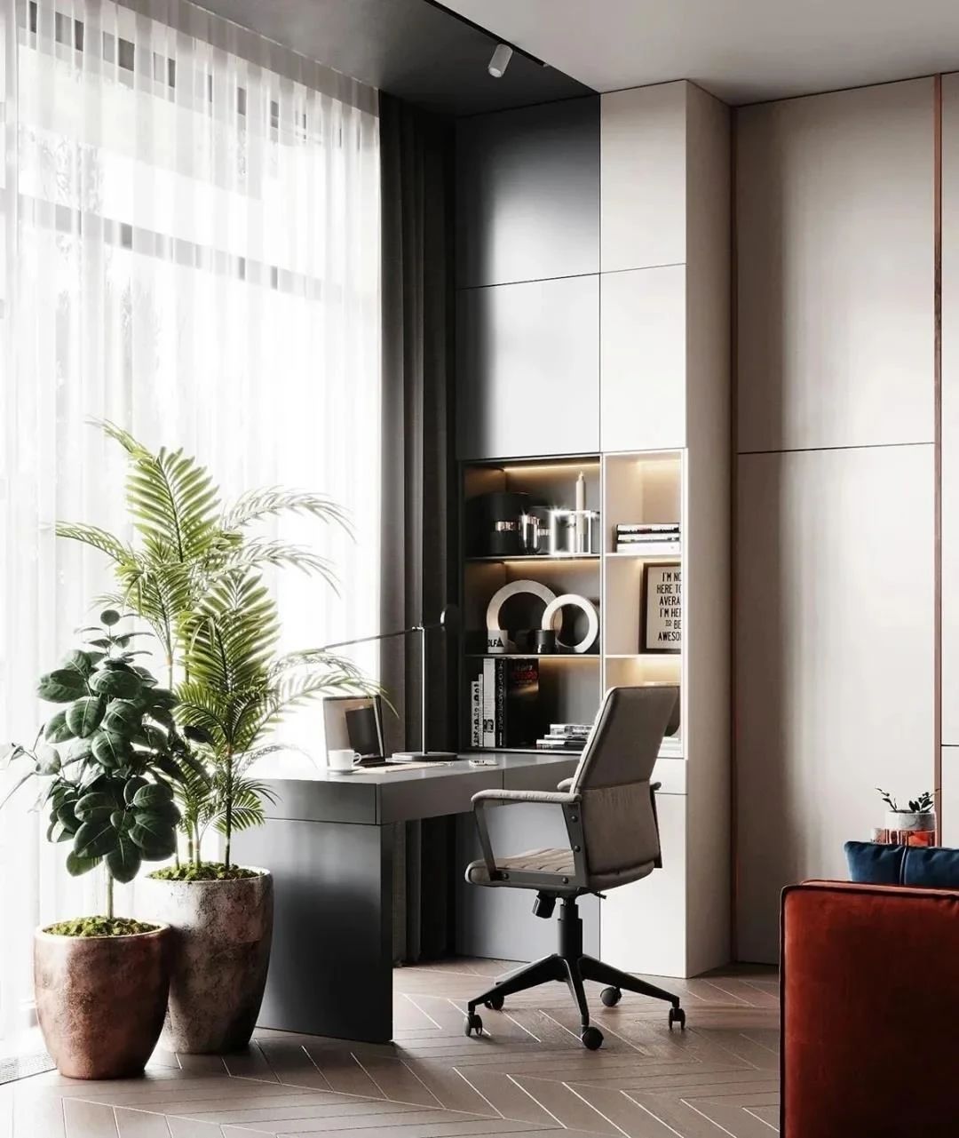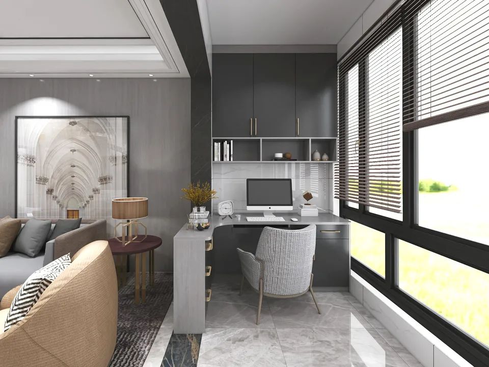 工作是嚴(yán)謹(jǐn)?shù)?、認(rèn)真的、一絲不茍的,工作陽(yáng)臺(tái)同樣如此。因此,工作空間的全鋁陽(yáng)臺(tái)柜,以冷靜理性的色調(diào),塑造嚴(yán)肅的空間。
