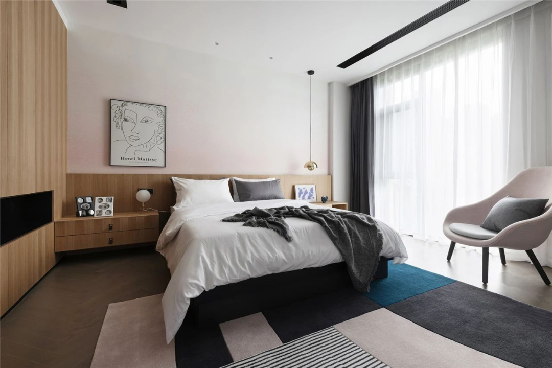 定制整墻式收納床頭柜,儲物能力大大提高,藏書、收納、辦公、展示功能一應(yīng)俱全,設(shè)計感還很高級。