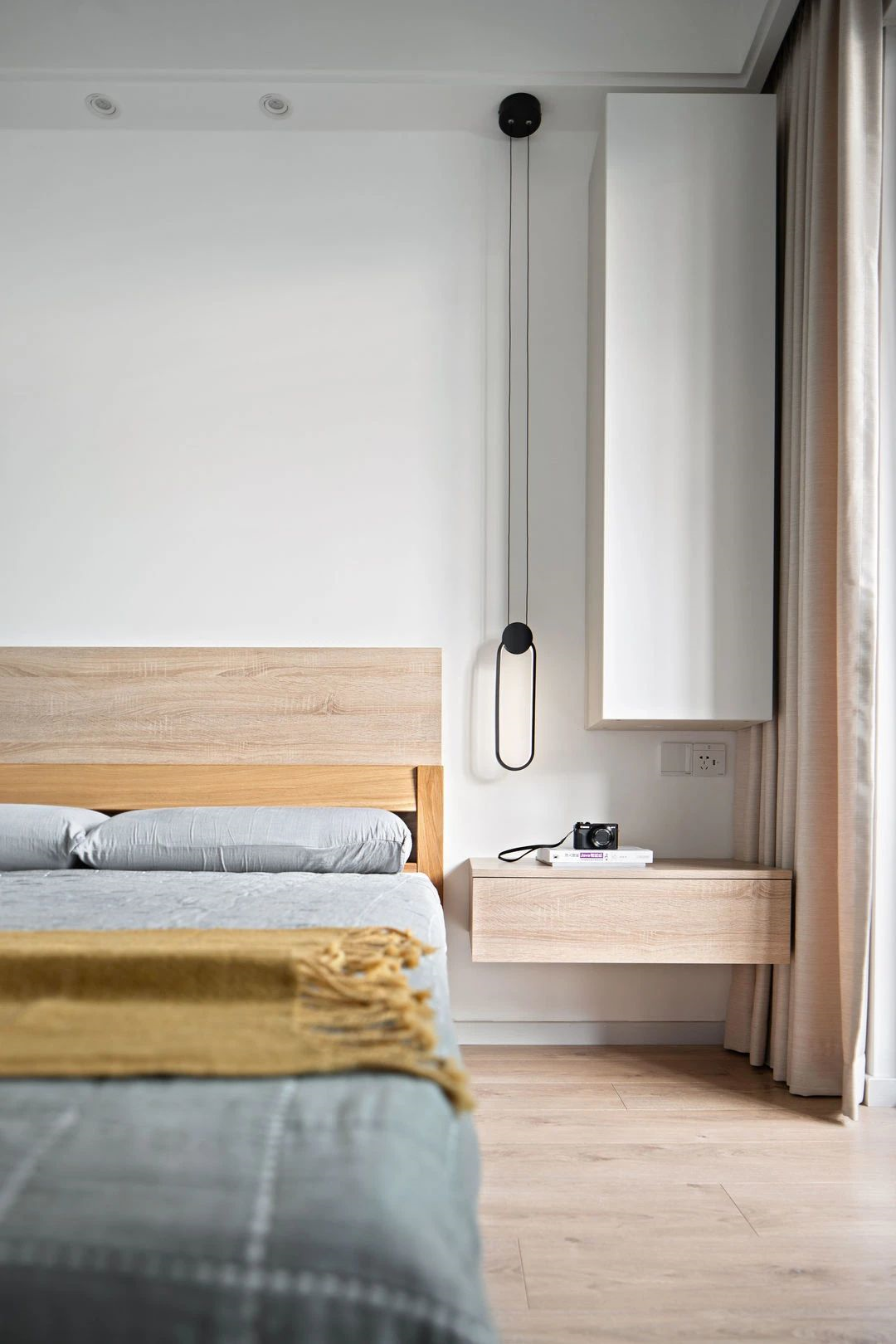 另外,一體式床頭柜還可以選擇用懸空柜的做法。