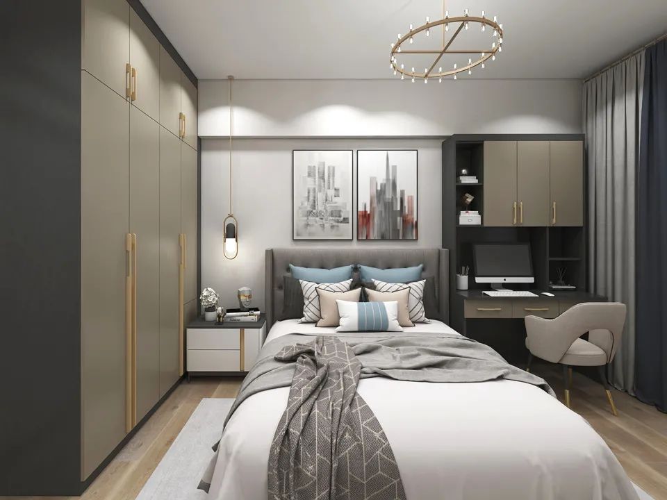 榻榻米+床頭書桌,能將次臥轉(zhuǎn)角或墻面的空間最大程度地利用起來,提升小房間的空間利用率。