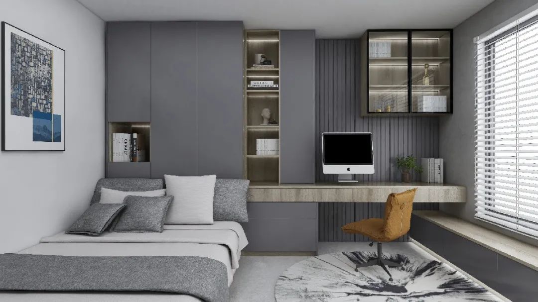 色彩可以對空間比例、面積、層次、氣質(zhì),起到加強(qiáng)或減弱的作用。像這樣,金色的加入,讓空間多了輕奢感。