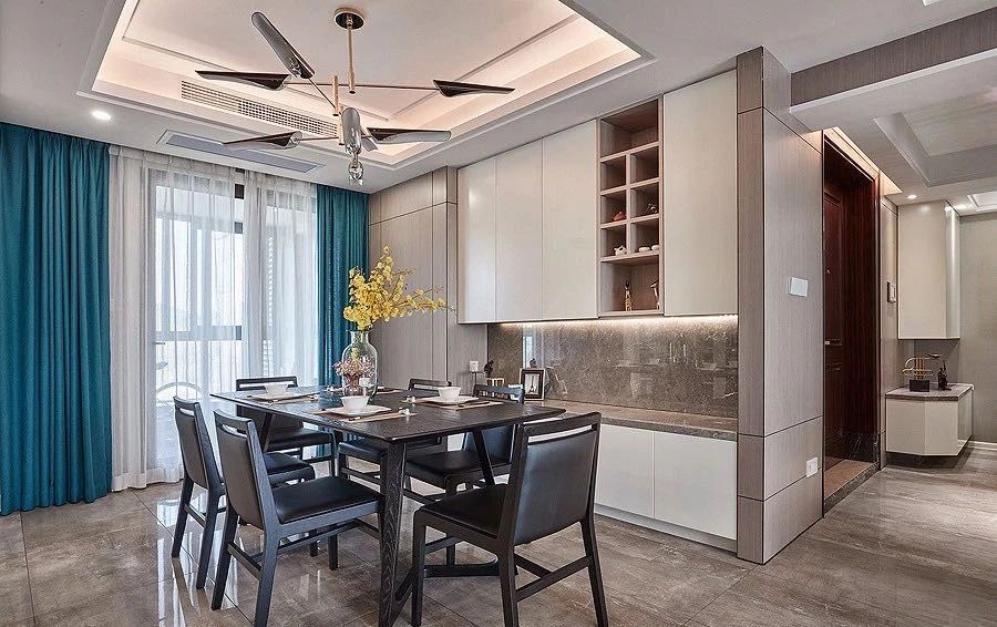 輕奢風(fēng)一般用中性色做主色調(diào),玻璃和金屬元素的加入,也增強(qiáng)了輕奢感。