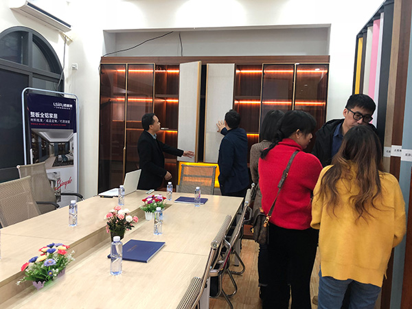 當看到我們今年的新產(chǎn)品—全鋁焊接整板樣板柜時,鎮(zhèn)長表示比拼板升級了好幾個檔次,真正把全鋁家居列入高端產(chǎn)品,極簡輕奢,加上燈帶等時尚元素,更受年輕人喜愛!現(xiàn)在新房裝修的主力是90/00后,抓住這部分人的喜好,才能更好的打開銷路!