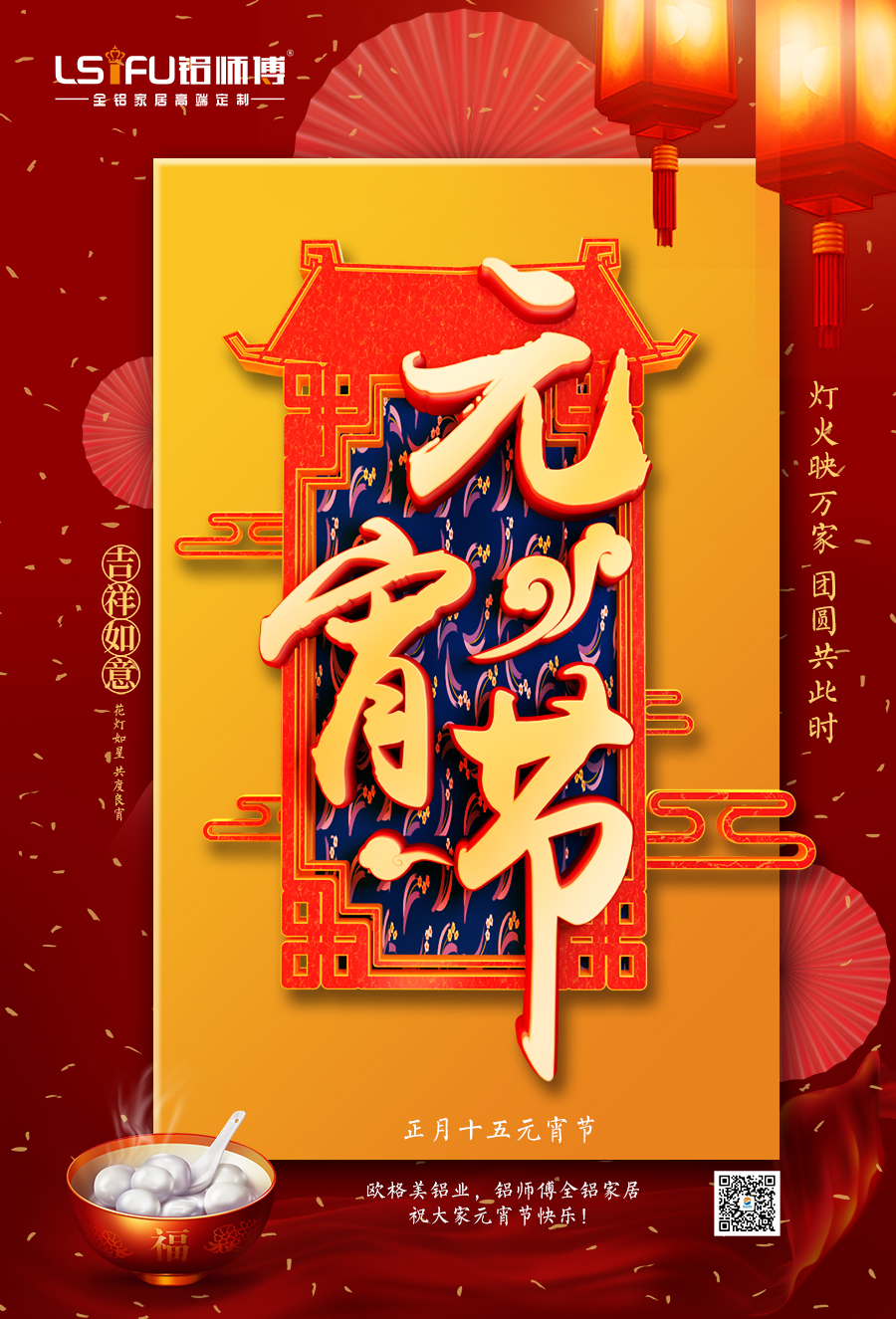 燈火映萬家,團(tuán)圓共此時(shí)。歐格美鋁業(yè)、鋁師傅全鋁家居全體同仁祝大家元宵節(jié)快樂,闔家幸福!