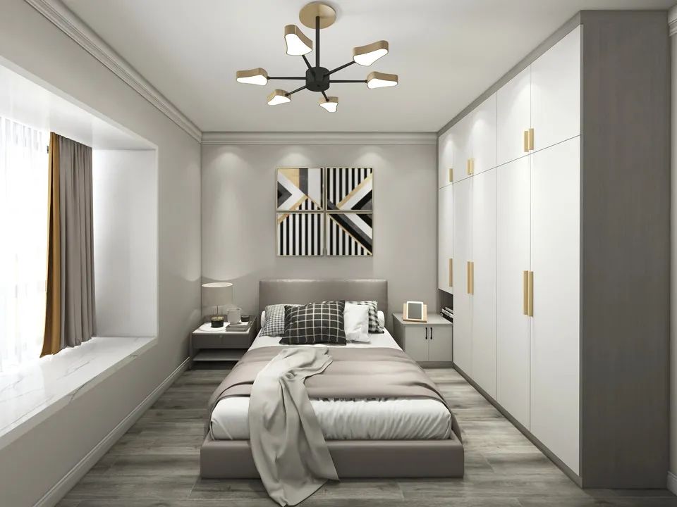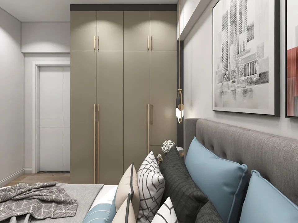 珠光閃銀卡其色衣柜門安裝效果: