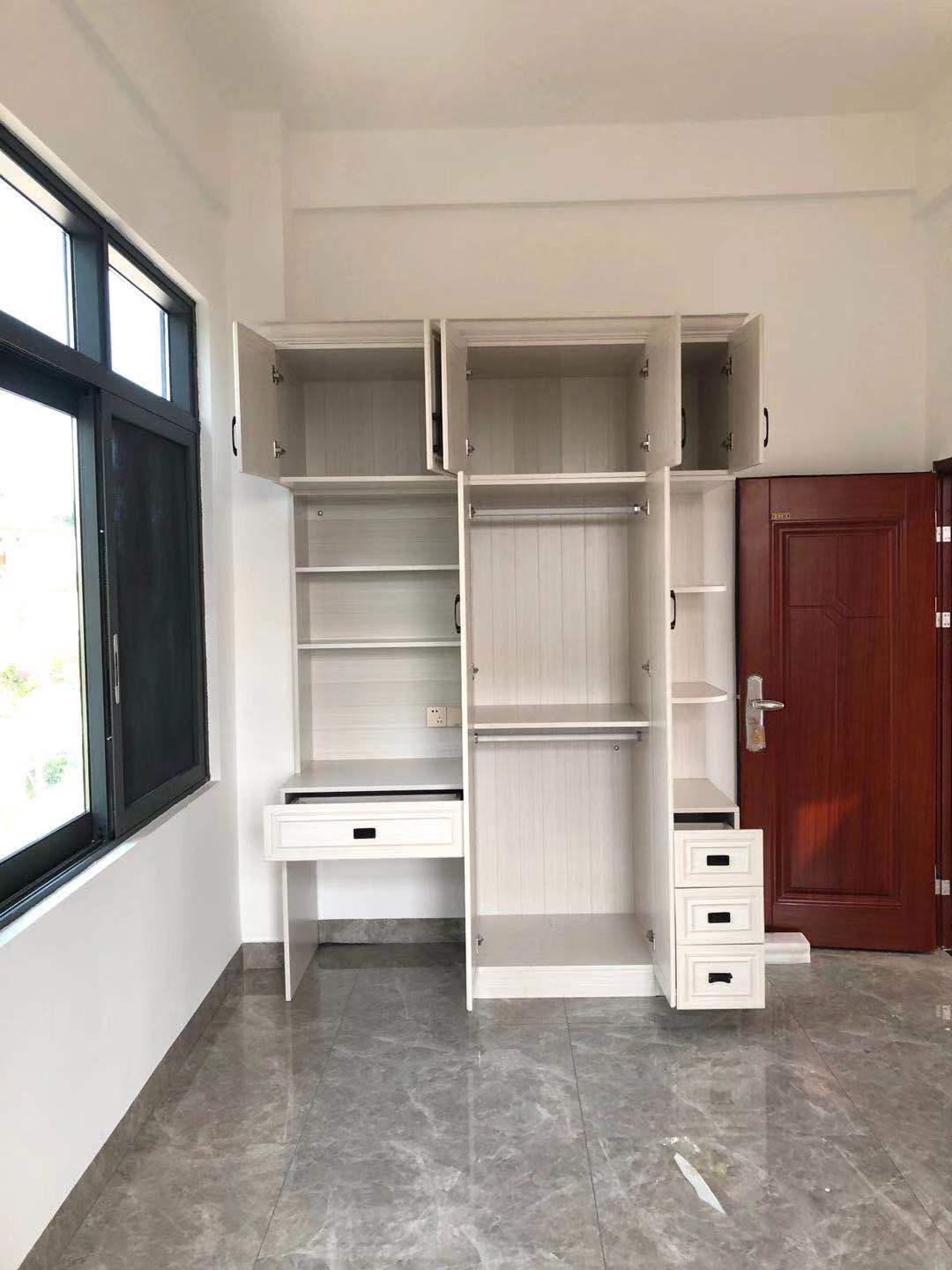 這座房子位于海南陵水縣,考慮常年比較潮濕,家具防潮是考慮的重點,所以業(yè)主選擇防水防潮防蟲蛀好打理的全鋁家具。自建房一共有四層,每層層高3米多,所以柜子家具也沒必要做到頂,做到頂反而由于太高會給后期使用帶來不便和浪費。
