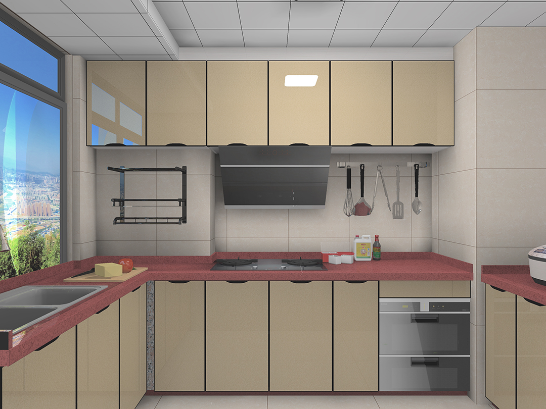 廚房是U型結(jié)構(gòu),按著勞動(dòng)動(dòng)線設(shè)置洗手臺(tái)→切菜區(qū)→裝盤區(qū)→烹飪區(qū),做飯不累,多一個(gè)人幫忙也不會(huì)亂。