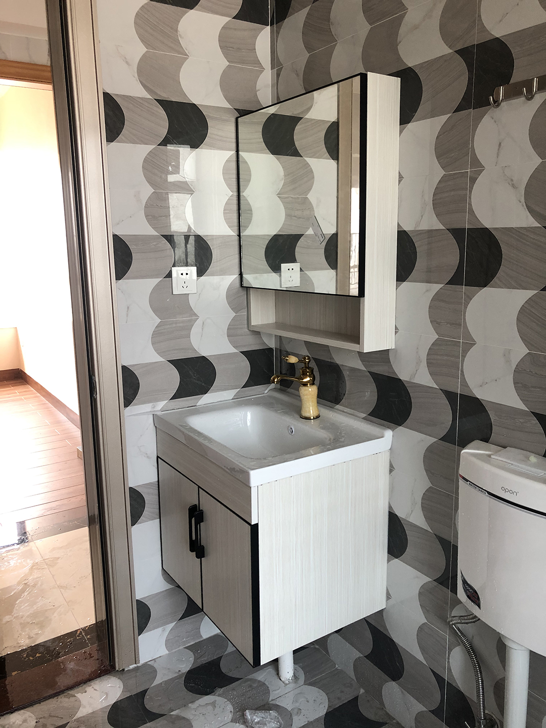 主衛(wèi)安裝壁掛式全鋁浴室柜,清潔更方便,柜體和門板都是北歐書香桐,與波浪紋瓷磚搭配別有一番風(fēng)情。
