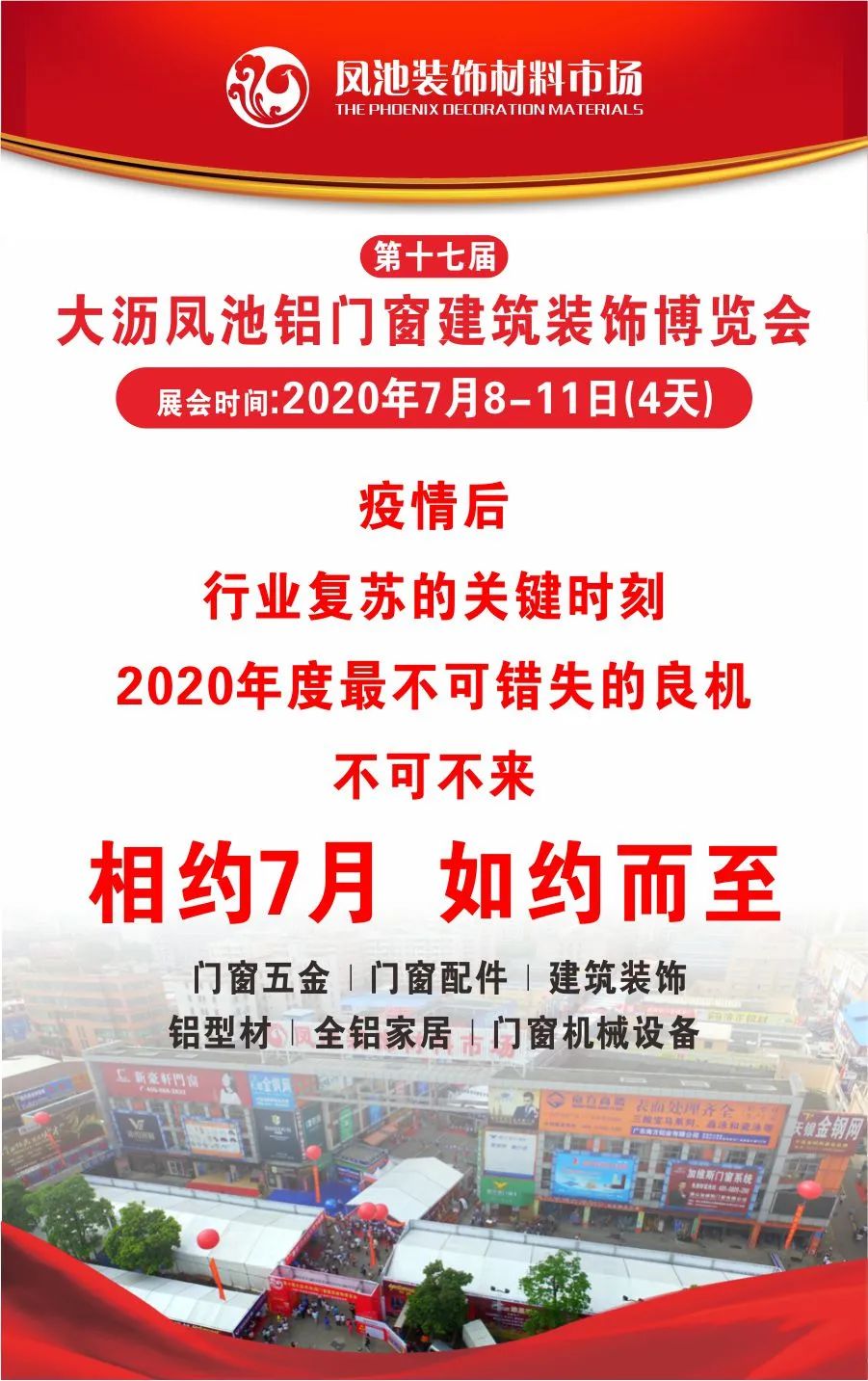 2020年7月大瀝鳳池展會(huì)主辦方(鳳池社區(qū)、鳳池經(jīng)聯(lián)社、鳳池裝飾材料市場(chǎng))和承辦方(佛山市南海銳覺展覽有限公司、佛山市南海區(qū)銳覺科技有限公司),經(jīng)大瀝鎮(zhèn)人民政府批準(zhǔn),旨在為后疫情時(shí)代,鋁產(chǎn)業(yè)廠商與經(jīng)銷商、產(chǎn)品與品牌搭建一個(gè)成果展示、洽談合作的相聚平臺(tái),為企業(yè)提供面向未來(lái)發(fā)展、尋找新機(jī)遇的良好氛圍,推動(dòng)“鋁產(chǎn)業(yè)”平穩(wěn)健康發(fā)展!